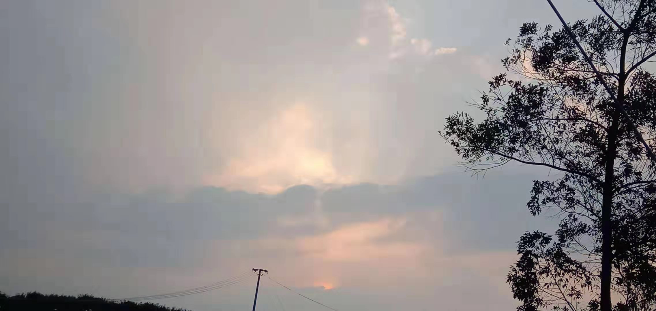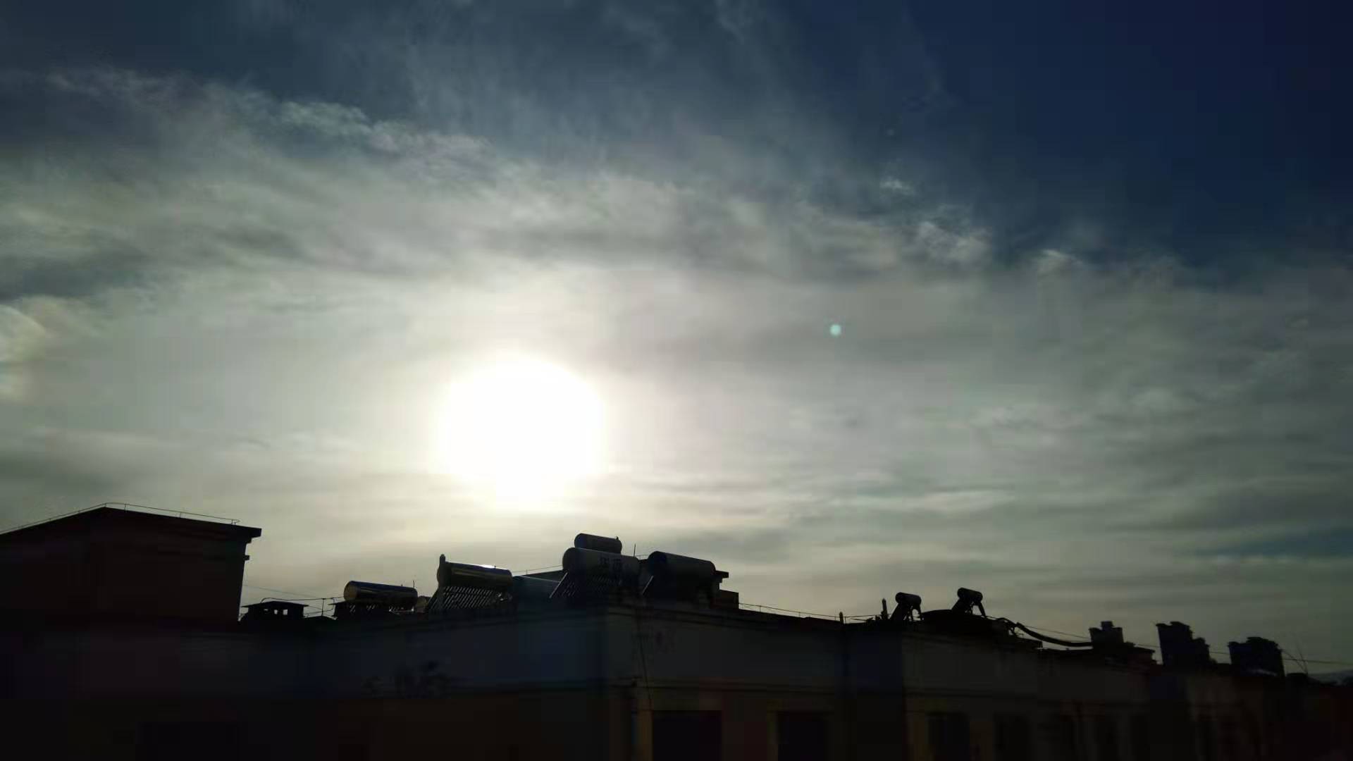 夕阳的傍晚,我游走在小道上,夕阳的余光,照耀着我的脸,我抬头看了一眼。不看不知道,一看吓一跳,我看到太阳上浮着一层云,映透一下,再往上看, 是一圈金黄色的光晕。一圈一圈的光晕,仿佛一位仙女在这光晕中诞生,看着,看着,消失在空中。