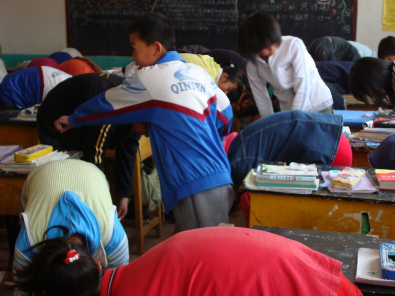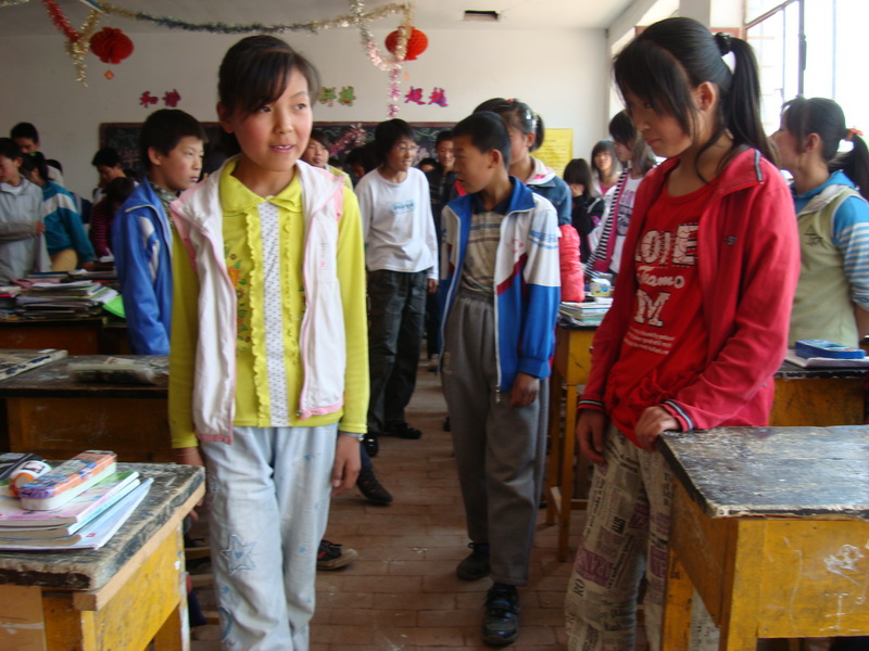 学完十四课后,老师说:"下面请同学们们站起来,我们来做一个小游戏,这个游戏非常简单,游戏规则是:我用英语指挥你们,你们听我的话做动作,谁错了就是"小笨熊"。
