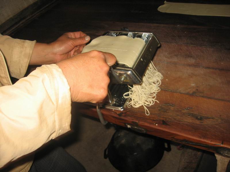 接下来,要用压面机将面切细。