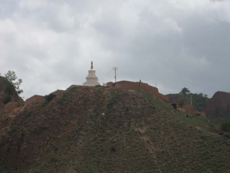 果然在山上有僧人在住,我们进去后我赶紧拿上照相机去拍照,但是僧人们立刻用手示意,不能拍照,我也不知道是为什么,但也很听话的不再拍了。这座寺庙很大,不过里面的对联上,还有所有描述寺院的文字都是用藏文写的,我一个字都不认识,看来这座寺院信仰的是藏族佛教。