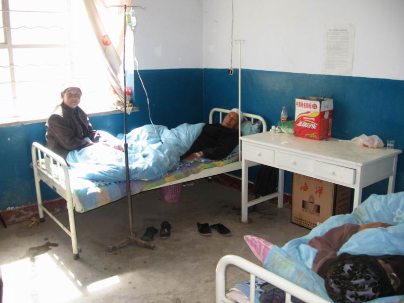 看!这就是病房,里面仅有两个病人,病房里的条件也不是很好。显然,病人的脸上布满了愁意。