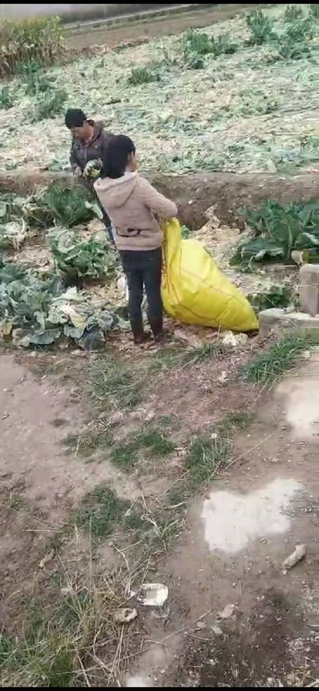 一家人干了三个多小时才装了一车菜