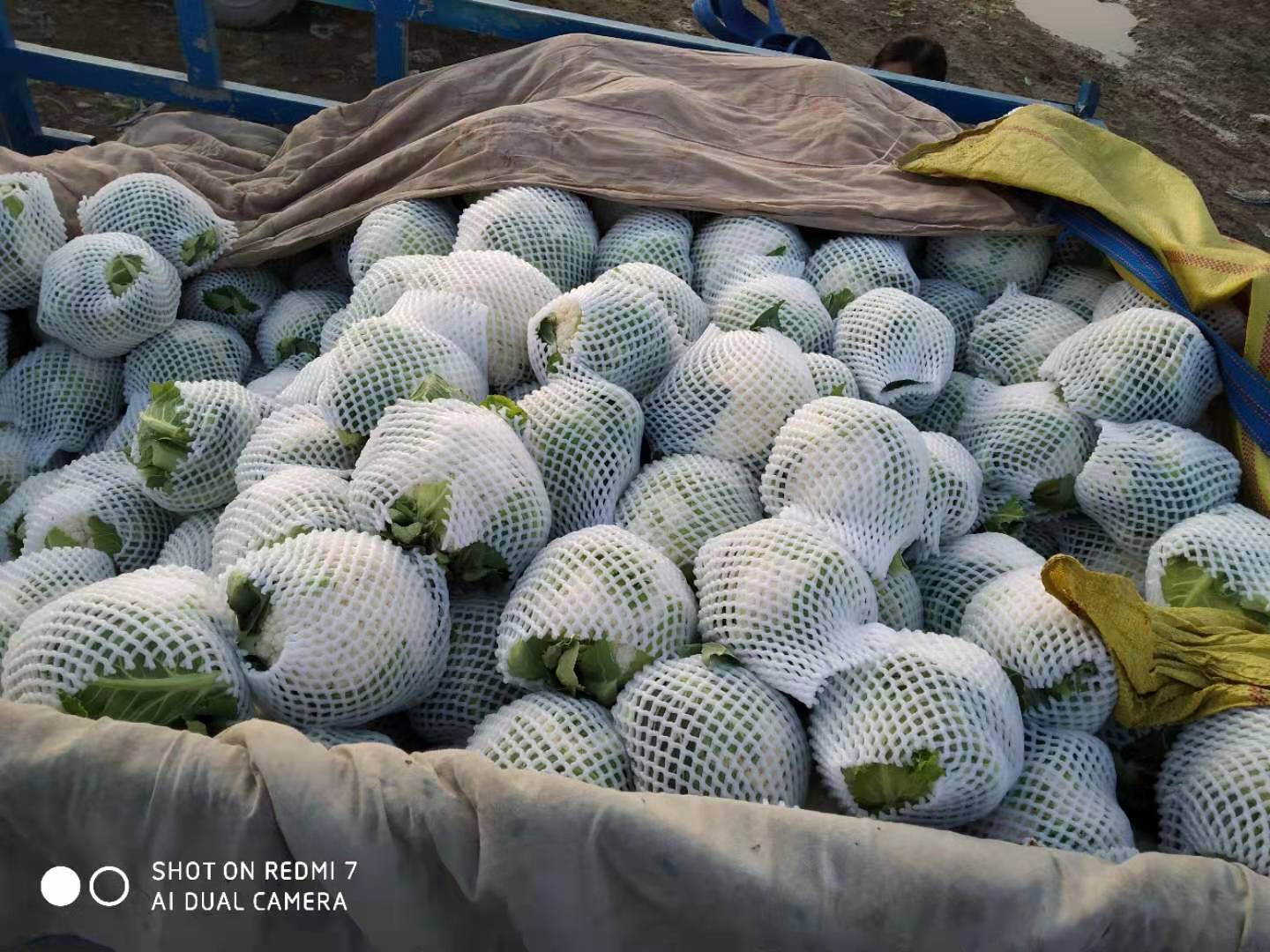 已经套好网套的一车菜花