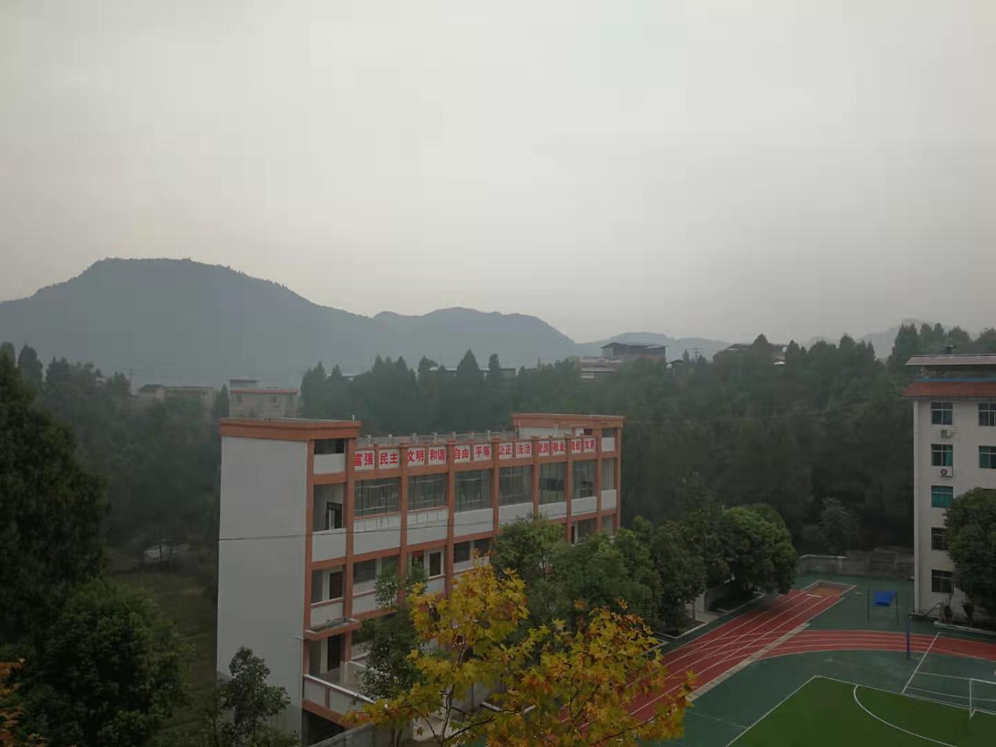 唯美的校园被山环绕