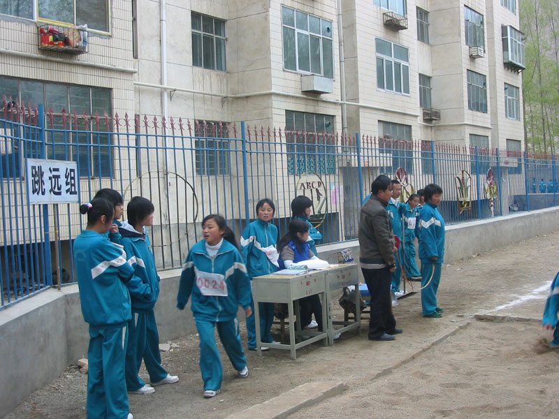 跳远场地上,无论是男生或是女生都在一旁做着热身运动,以求取得好成绩,不论是谁去参加比赛,其他队员都会为他们加油鼓劲,即使自己没有别人优秀,也同样会为别人的努力而高兴。