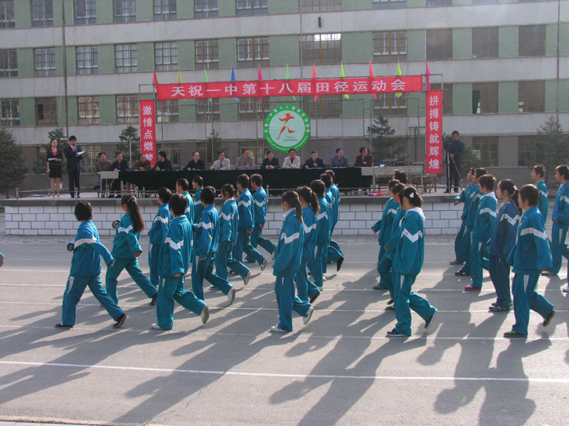 一年一度的运动会开幕了。开幕式上,各班代表队身着校服,踏着整齐的步伐,喊着响亮的口号,进入了会场。主席台上,是我校的领导在检视着各班的入场情况,台下有各班代表队与班主任老师,任课老师。开幕式刚开始时,全体起立唱国歌,升国旗,校长致开幕辞,裁判员代表与运动员代表分别宣誓。开幕式结束后,运动会正式开始。