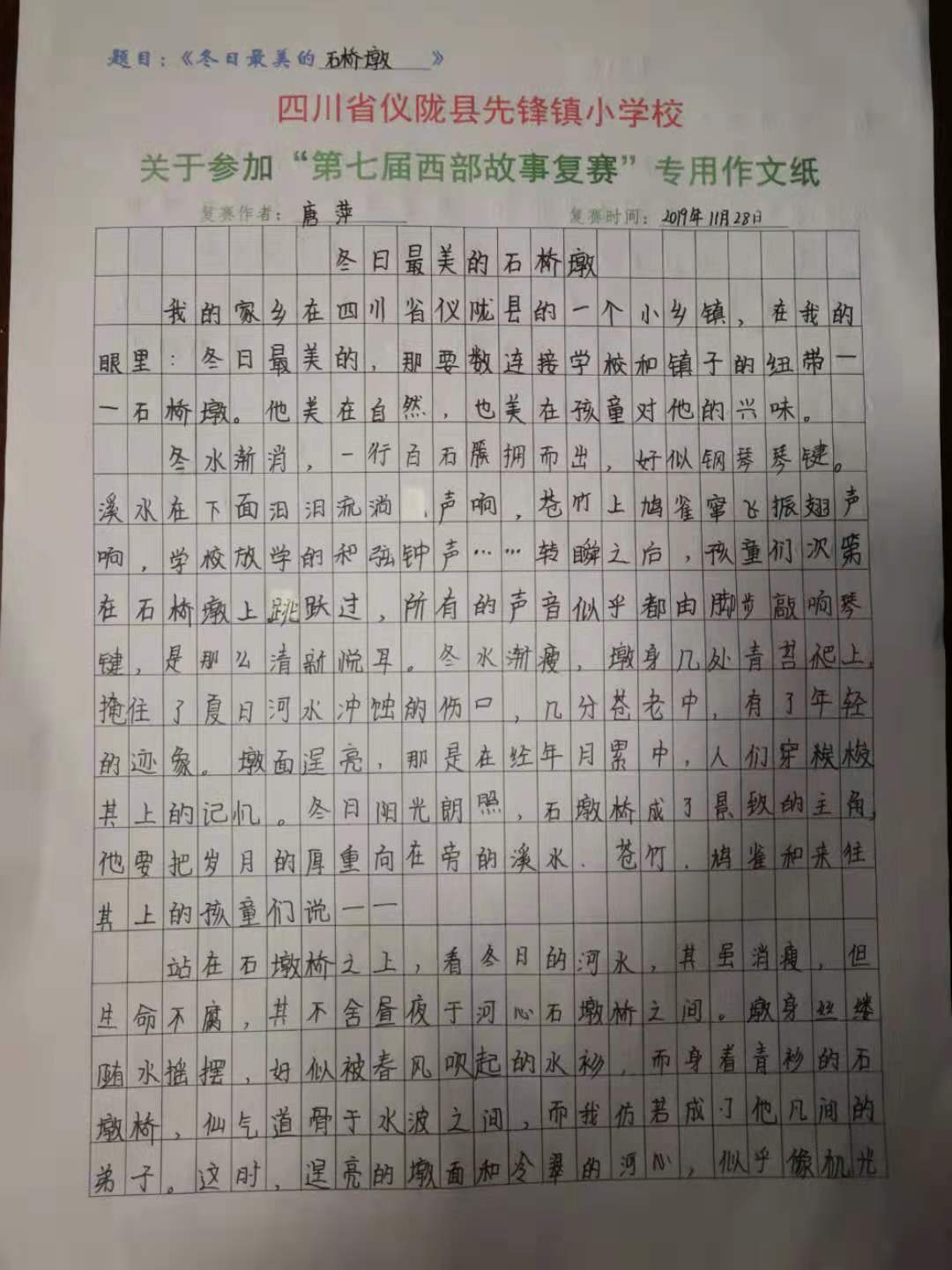 我的家乡在四川省仪陇县的一个小乡镇,在我的眼里:冬日最美的,那要数连接学校和镇子的纽带——石桥墩。他美在自然,也美在孩童对他的兴味。