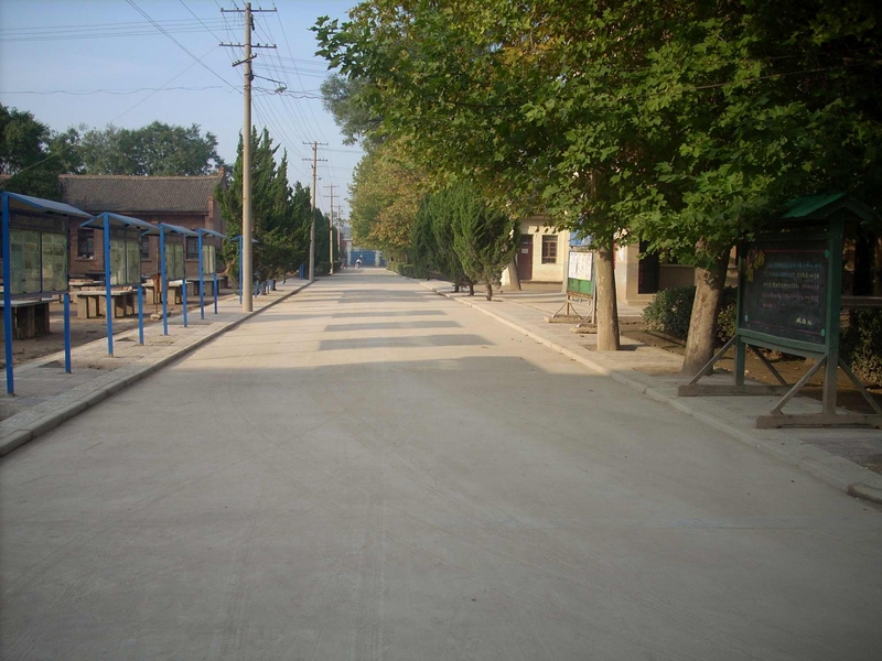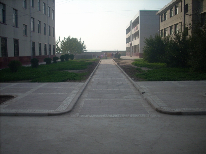 进入大门,一条长约500米的笔直、平整大道展现在面前,以前,这条路是柏油路,年久失修,也是坑坑哇哇。给我们打扫卫生都带来了不便。这条道是这次修建工作的主要任务,当时,挖掘机、碾路机等各种机器停放在学校里。工人们光修这条路就花费了将近一个月时间,现在当我们走在这条路上时,心境也非常愉悦。