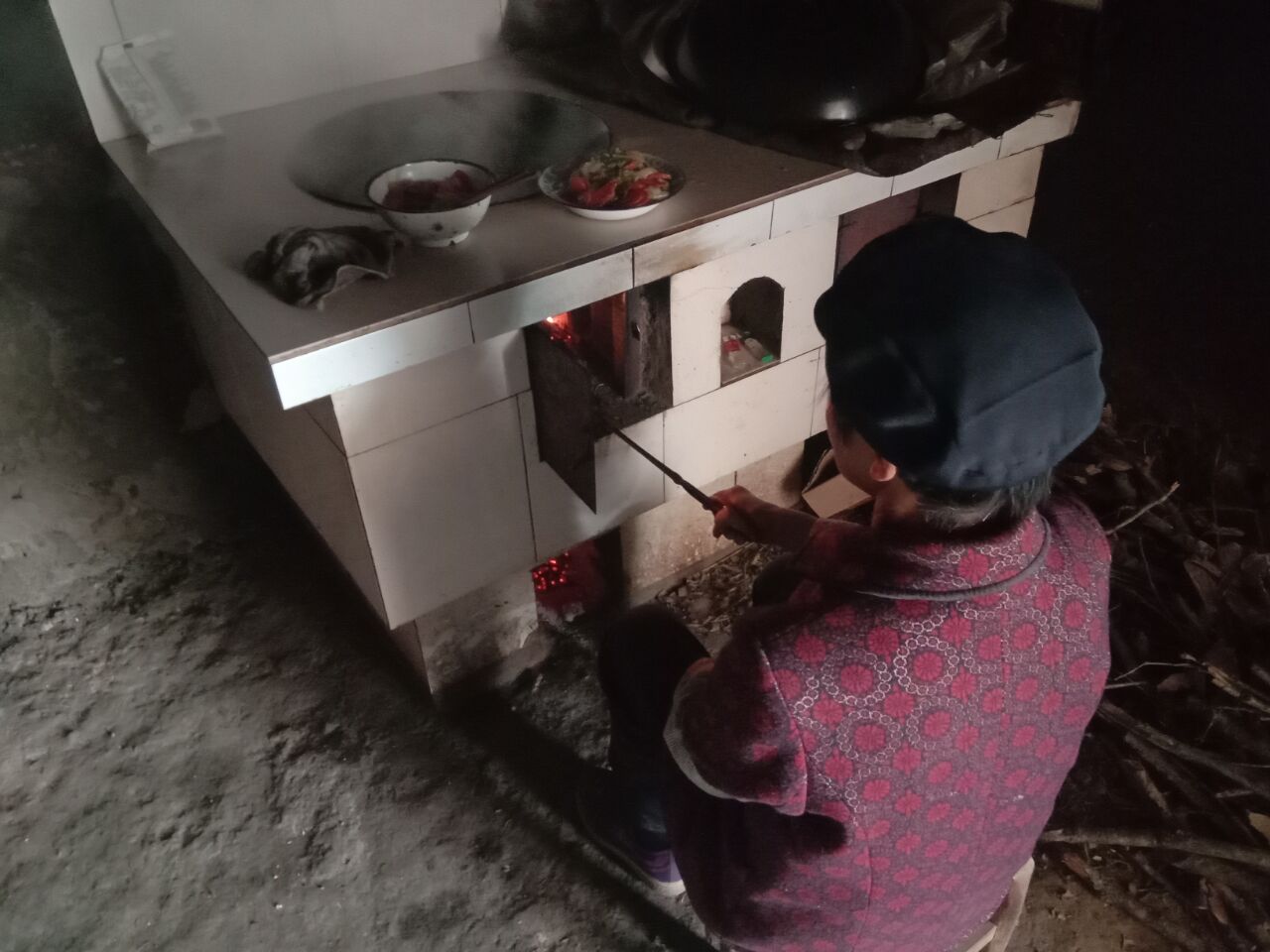 开始烧水了,姥姥用她那裂缝密布的手颤颤抖抖的把柴块放进灶炉里。