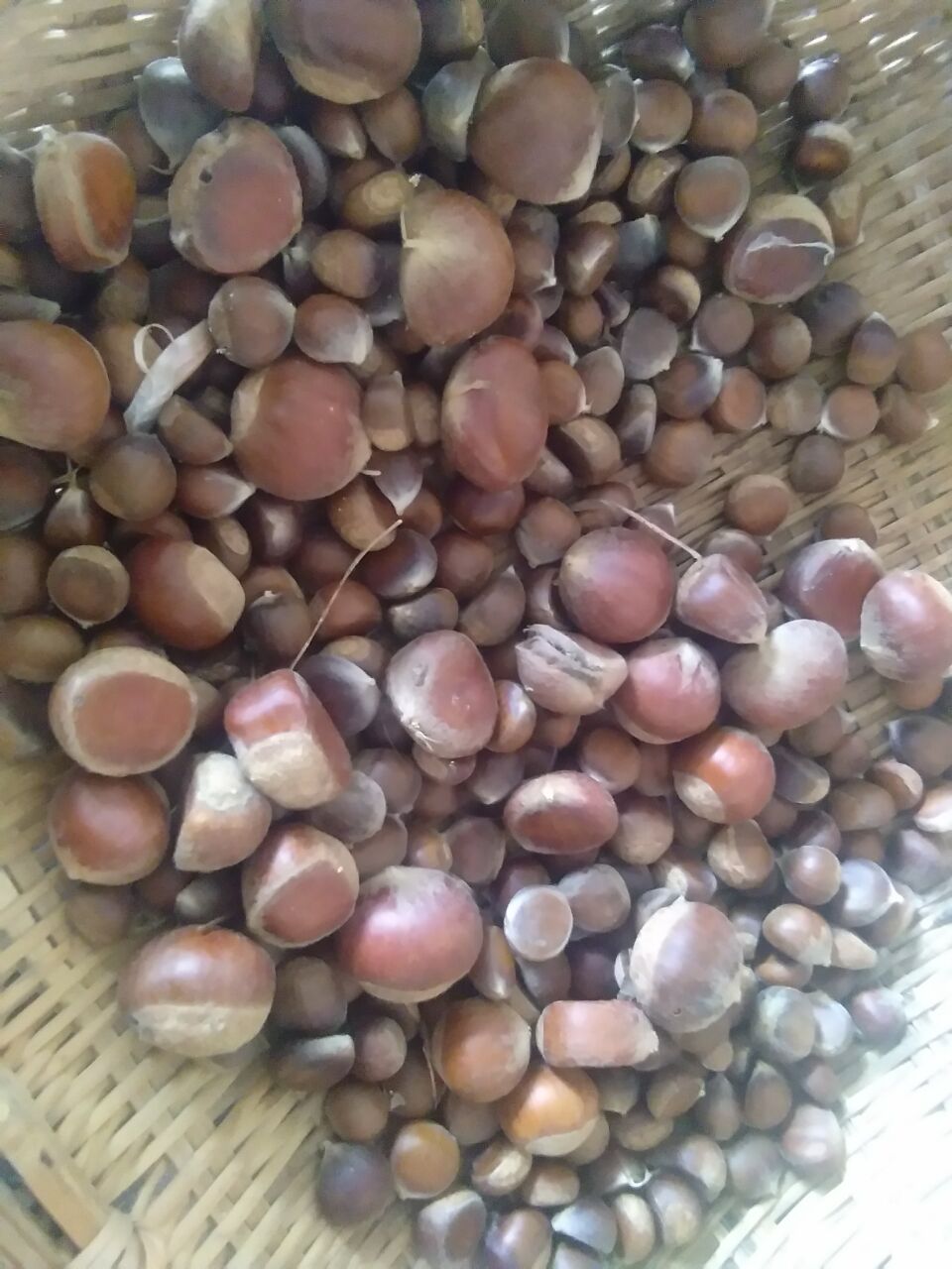 在这个季节,板栗也熟了。一个个成团儿似的从树上掉下来,团在一起,就像一个小刺猬似的趴在那里,身上带着刺儿。要用很大的力气才能把它弄开。