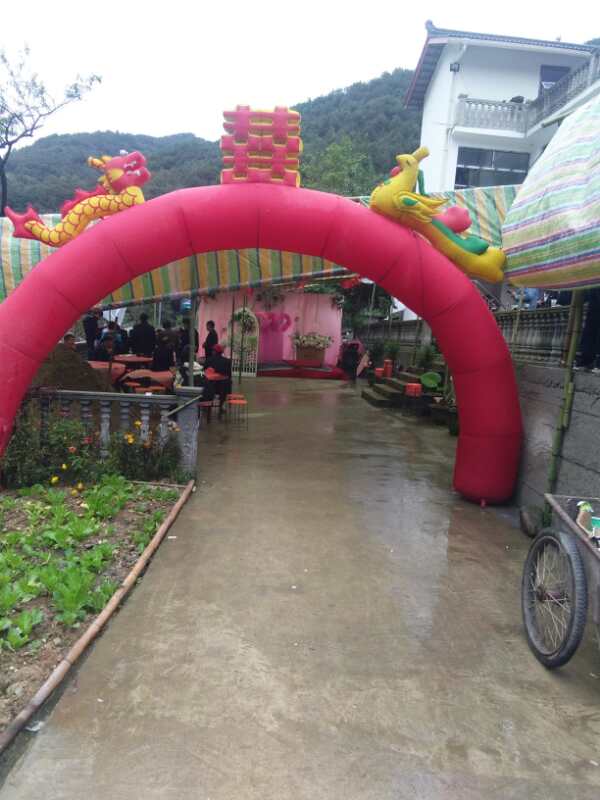 主人大设宴席来感激到场的亲朋好友,小朋友还有红包和喜糖,最吸引我们的还是那一串串喜庆的气球。