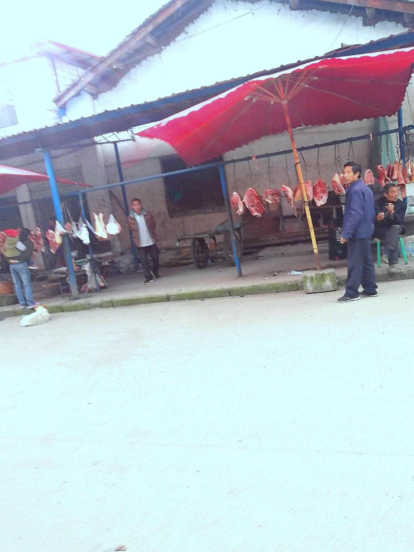 再往下来就是开商店的老板坐在门前看到个老熟人引起笑脸,打个招呼多亲切啊!无污染什么白菜,青菜,包包菜,黄瓜,茄子,西红柿,应有尽有。在卖菜的旁边,就是卖肉的了,虽说今年因为疫情猪肉涨价了,但是我们这儿的价格还是差不多的,况且猪都是当天杀,当天卖完没有剩下的。再往下去就更热闹了,有买生活用品的,卖水果的,各式各样的地摊一直延伸到移民点内。