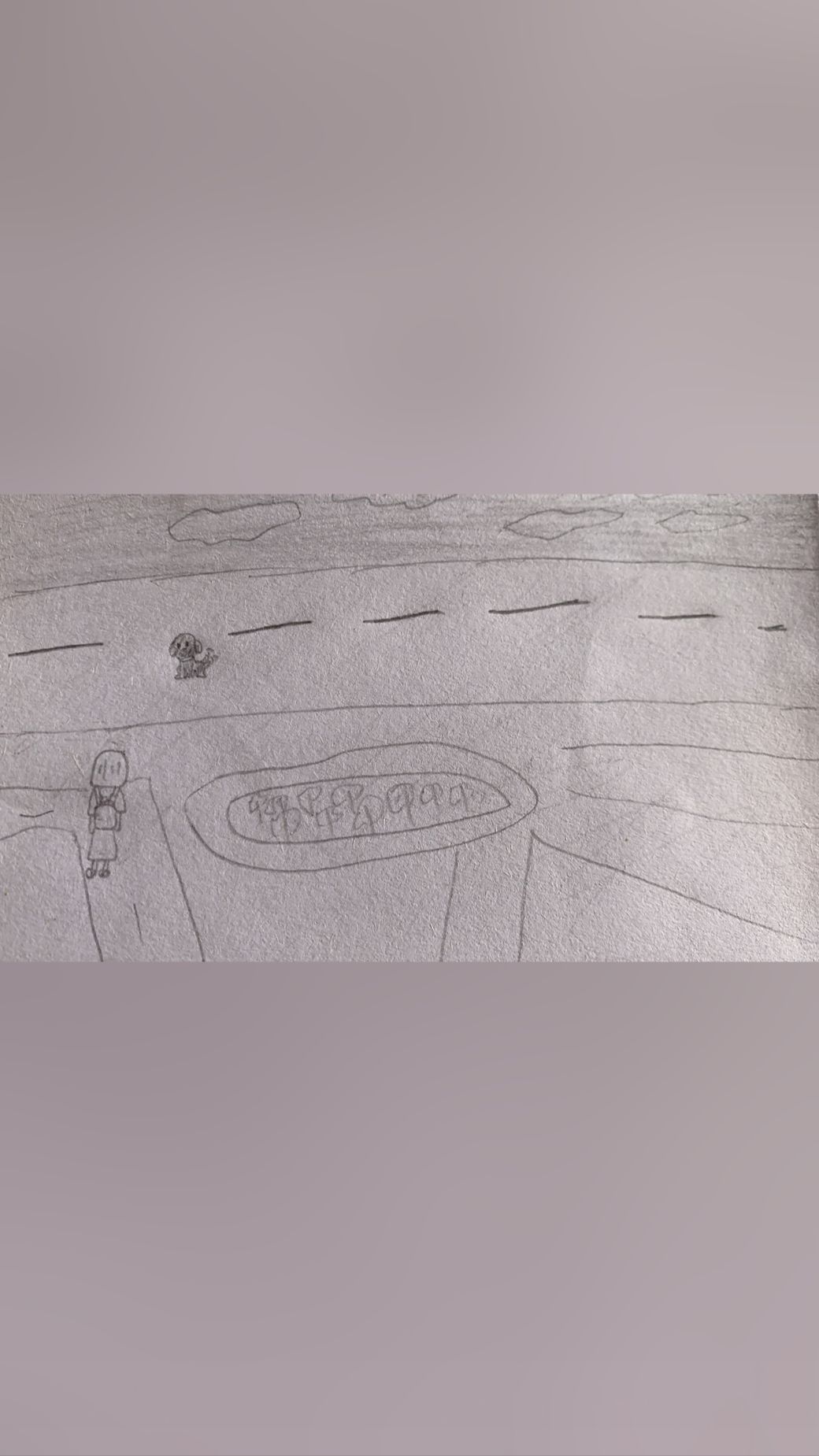 正埋怨着,我猛然想到,小黑也正在马路上玩,现在岂不是也像我刚刚那样危险。于是,我转过身,来加足马力,奋力的飞奔,心里想着:"小黑千万不能有事呀,脑子里还一直浮现一辆辆大车从小黑身边擦过的场景。我跑得更快了,"马上到了,马上到了!"我默念着。忽然!我看到小黑了!我高兴地大喊:"小黑!小黑!过来呀!"他又摇尾巴啦!看到小黑没事,我真的太开心啦!