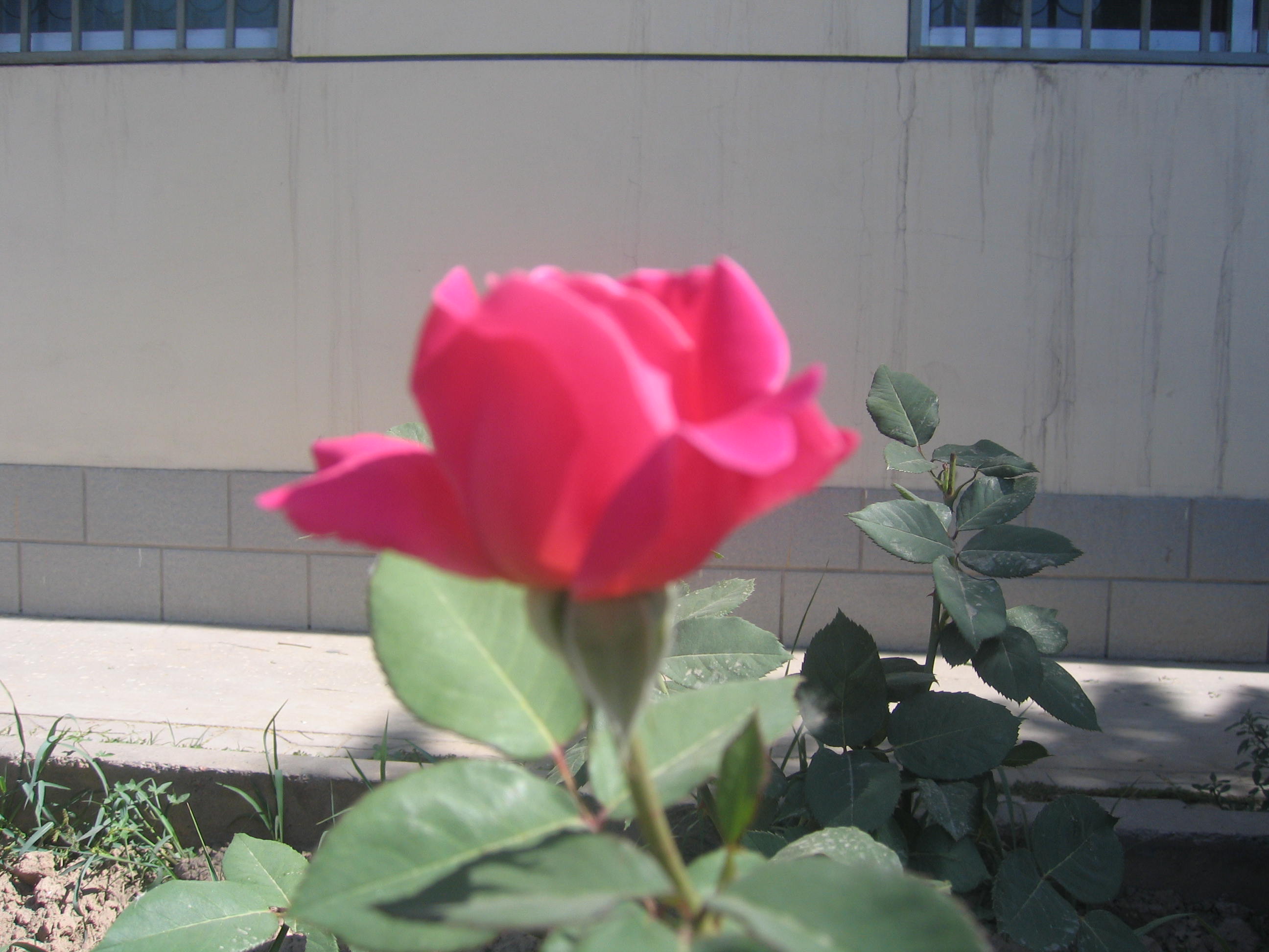 上星期三,我发现了一朵月季花开了。我很开心。这朵月季花像一个亭亭玉立的少女。红色的花瓣被绿叶衬托着,花中央的花蕊是黄灰色的,闻一闻还有淡淡的花香令人百闻不厌,我一定要好好照顾它。