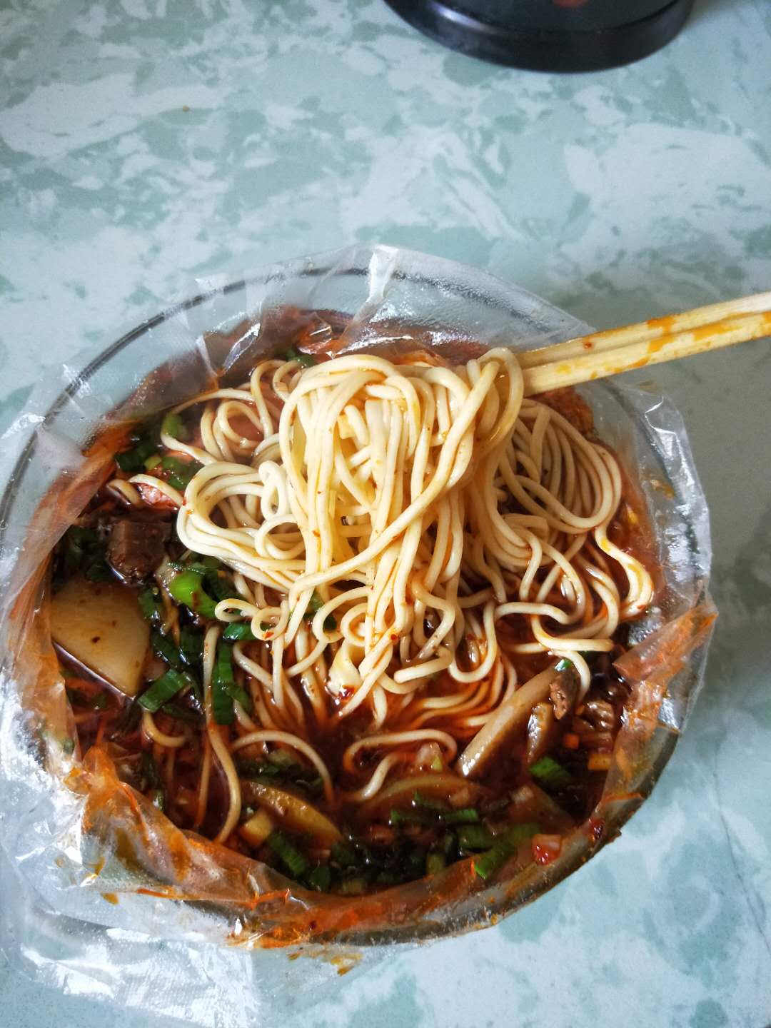 搅拌一下,尝一口。鲜味,辣味席卷而来,刹那间,舌尖就像含着一团火,麻麻的,火辣辣的! 不要辣椒,更是一种享受!喝一口汤,感觉截然不同:鲜香的汤汁在口中打转,牛肉虽然没吃到嘴里,但香味一再口中慢慢溢开。若是在加点牛肉,那就更香了!嘿嘿,别着急往嘴里送,这连汤带肉一起吃,才叫绝呢!只需一咬那种有些咸有些鲜的味道便喷涌而出。