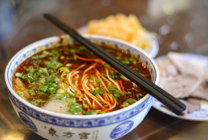兰州拉面是兰州的特色小吃,在甘肃也能称得上一个“妙”字。 兰州拉面的全称是兰州牛肉拉面,那一根根白色的面条卧在清汤里,一片片牛肉铺在面上,里边还有油绿的小葱和香菜散落在其中。