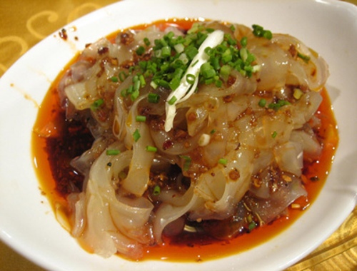 第一次自制粉皮以失败而告终,但这个过程是我懂得凉粉在冷却的时候才能凝固。第二天,我又如法炮制:倒少量的凉开水,放上一半的粉,我再加上适量的糖和热开水,不断地搅拌。虽然他还是像水一样稀,但我吸取教训,不再加粉就放进了冰箱。午觉醒来,果然不出所料,成功了!
