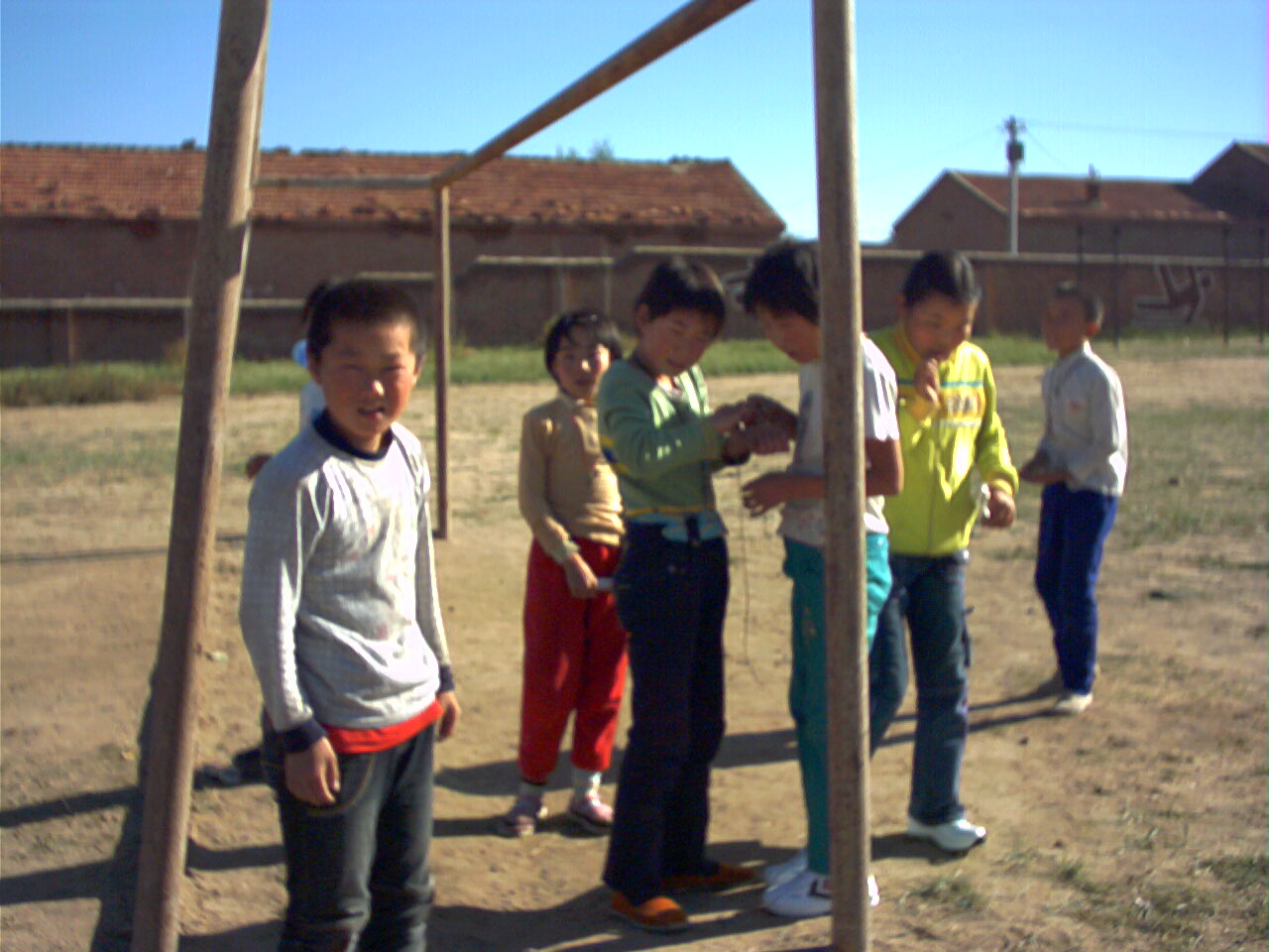 校园里的体育工具也不错,什么双杠、单杠、爬栏......。我们都爱到那儿玩。