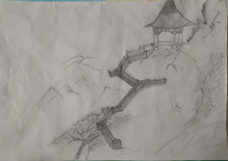 五泉山位于兰州市区南侧的皋兰山北麓,公园景点以五眼名泉和佛教古建筑为主,由东长廊西望,在那高耸、陡峭的青云梯下有一个四角钟亭雄立山腰。