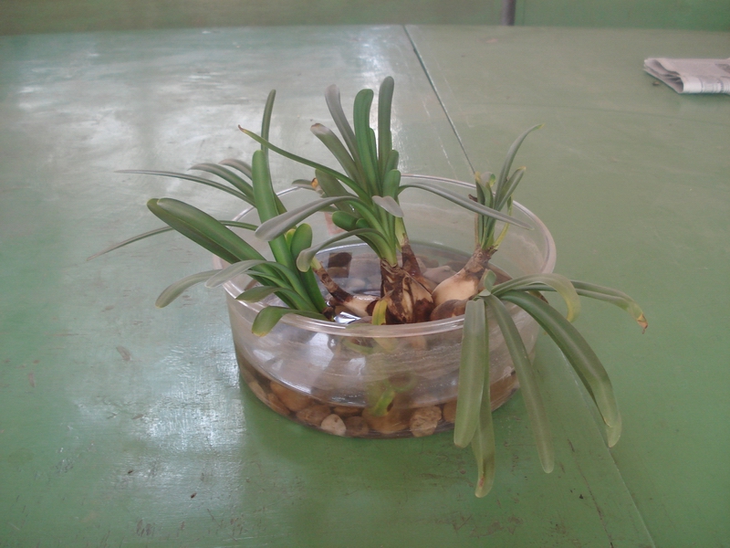 在我们学校办公室的桌子上放着一盆水仙花,这是去年冬天,我们学校的史校长带回来的。