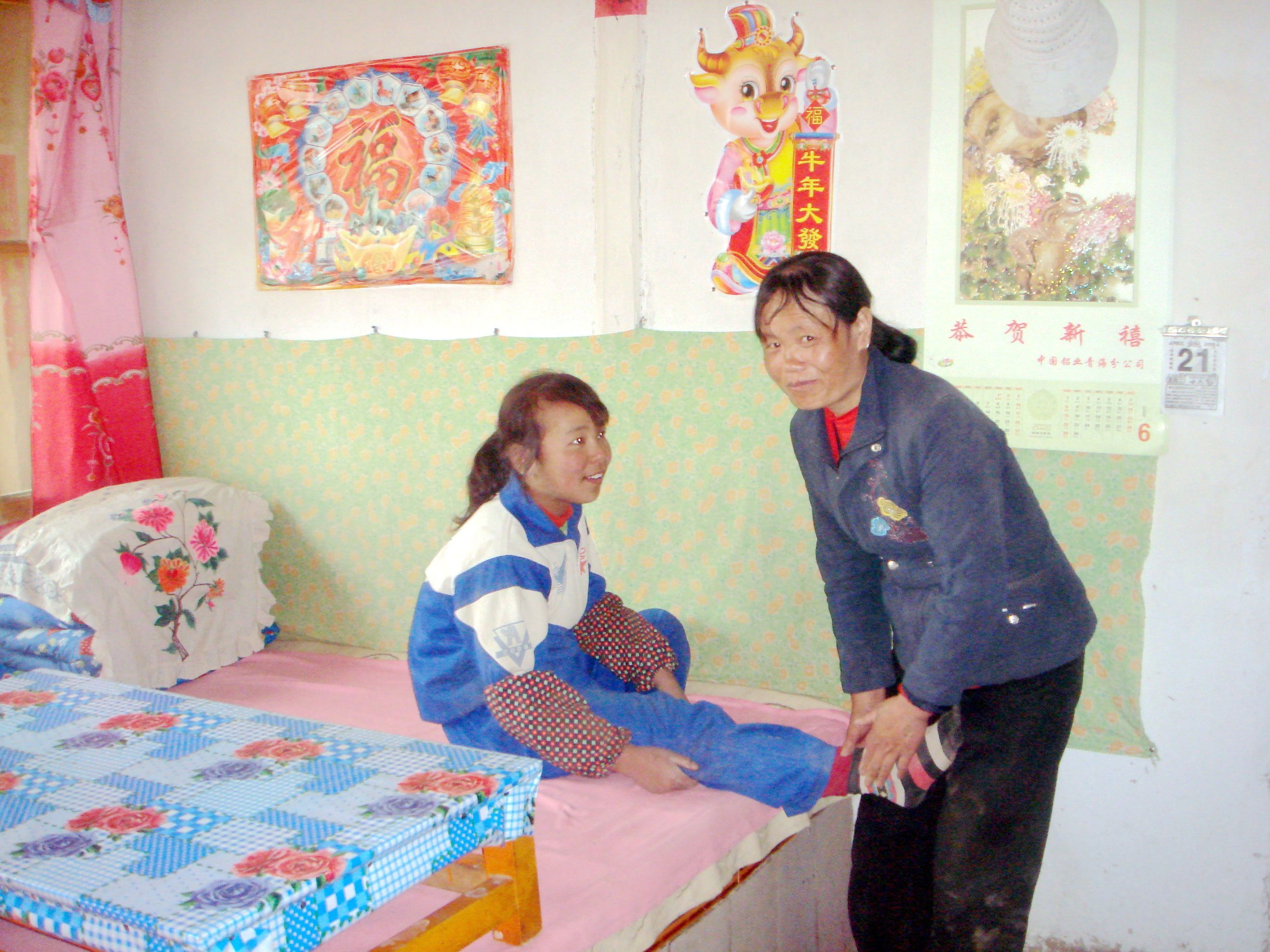 有一次我的脚被拐着了,妈妈背着我到卫生所去看,医生看看说:"把这点药吃完就好了"。妈妈又背我到家里去,说:"我揉一下"。我说:"行",妈妈就揉了一下,过了几天就好了。