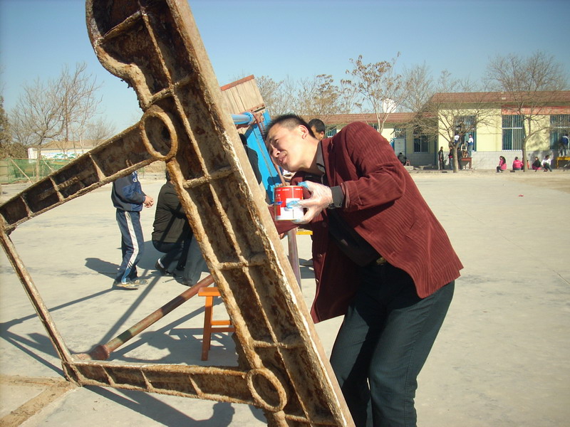 在学校里,老师不仅教我们知识,做人的道理,适当的会让我们劳动一下,锻炼我们劳动能力。前提下,老师自己先动手干,给我们做榜样。看,老师把篮球杆搬倒,在认真地检查零件,老师那认真负责的态度,让我们看到劳动中的老师,一样的敬职敬业。嘿!其实这些篮球杆是旧的,学校为了省钱,帮助那些贫困的孩子。所以没换新的,就搬下来,检查一下,再涂上油漆,让它变成新的。