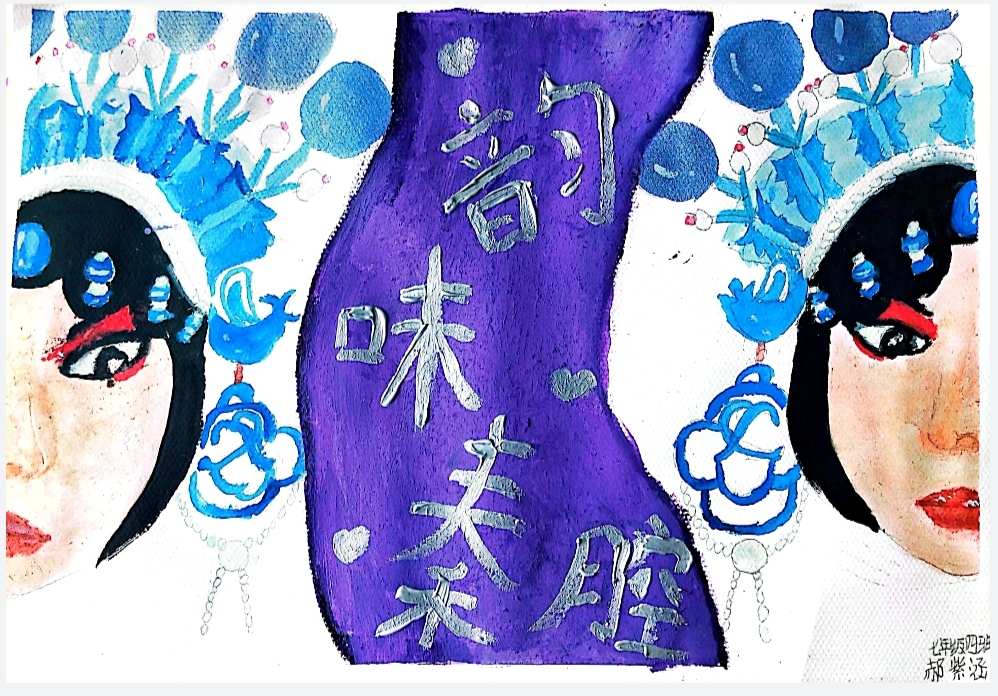 我们的秦腔应该发扬起来 弘扬起来 ,中间以渭河(紫色的那个 )为打底 再写上标题表明我们这里是秦腔的发源地 ,为什么说是韵味呢 因为我很秦腔的调子 ,觉得听的时候很有韵味 所以就叫韵味秦腔,同时也觉得传统文化不应该失传 应该让更多的人知道我们这里的一个传统文化 。