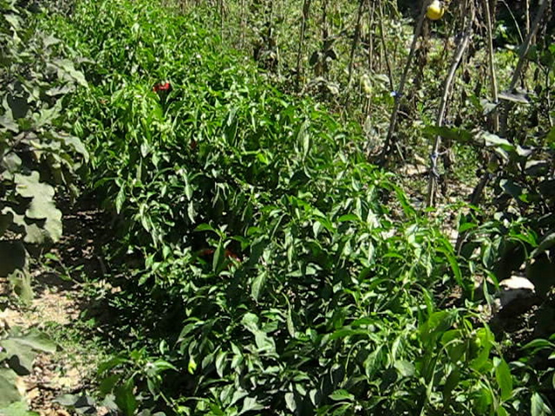再看看那里的辣椒,虽然它的秧不高,但上面结了许多的辣椒,那辣椒水汪汪的,而且还非常地辣,肉厚,每次妈妈做饭的时候,锅里就放一两个辣椒,做出来的饭正适合我们的口味,吃起来味美可口,新鲜,非常地有辣劲。