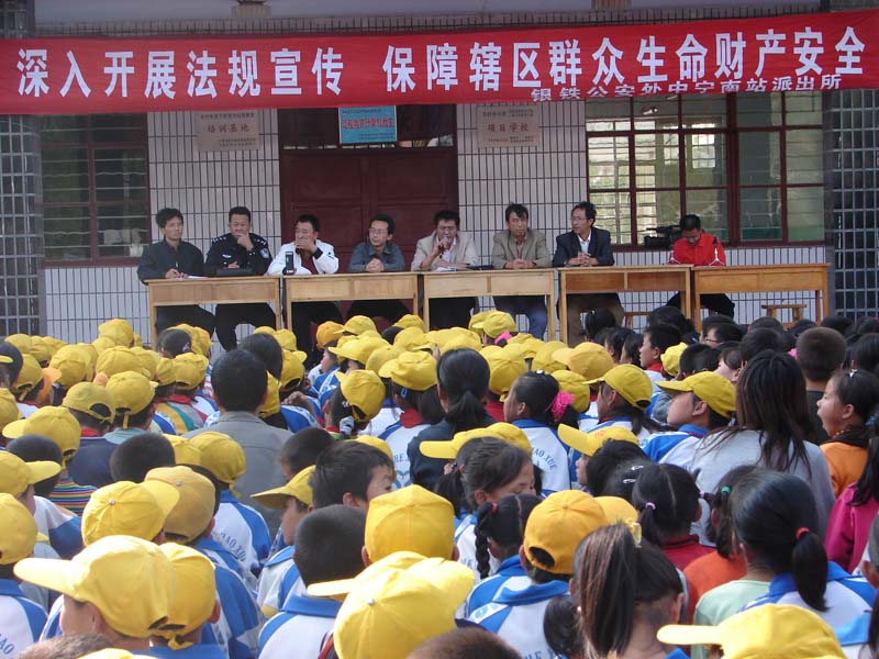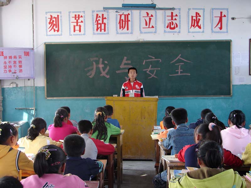 他们是专门来给我们做有关安全方面的报告的,主要宣传铁路周围的安全问题。我们这些刚入学的初中生和一些戴着小黄帽的小学生弟弟妹妹们一起学习了一些安全知识。