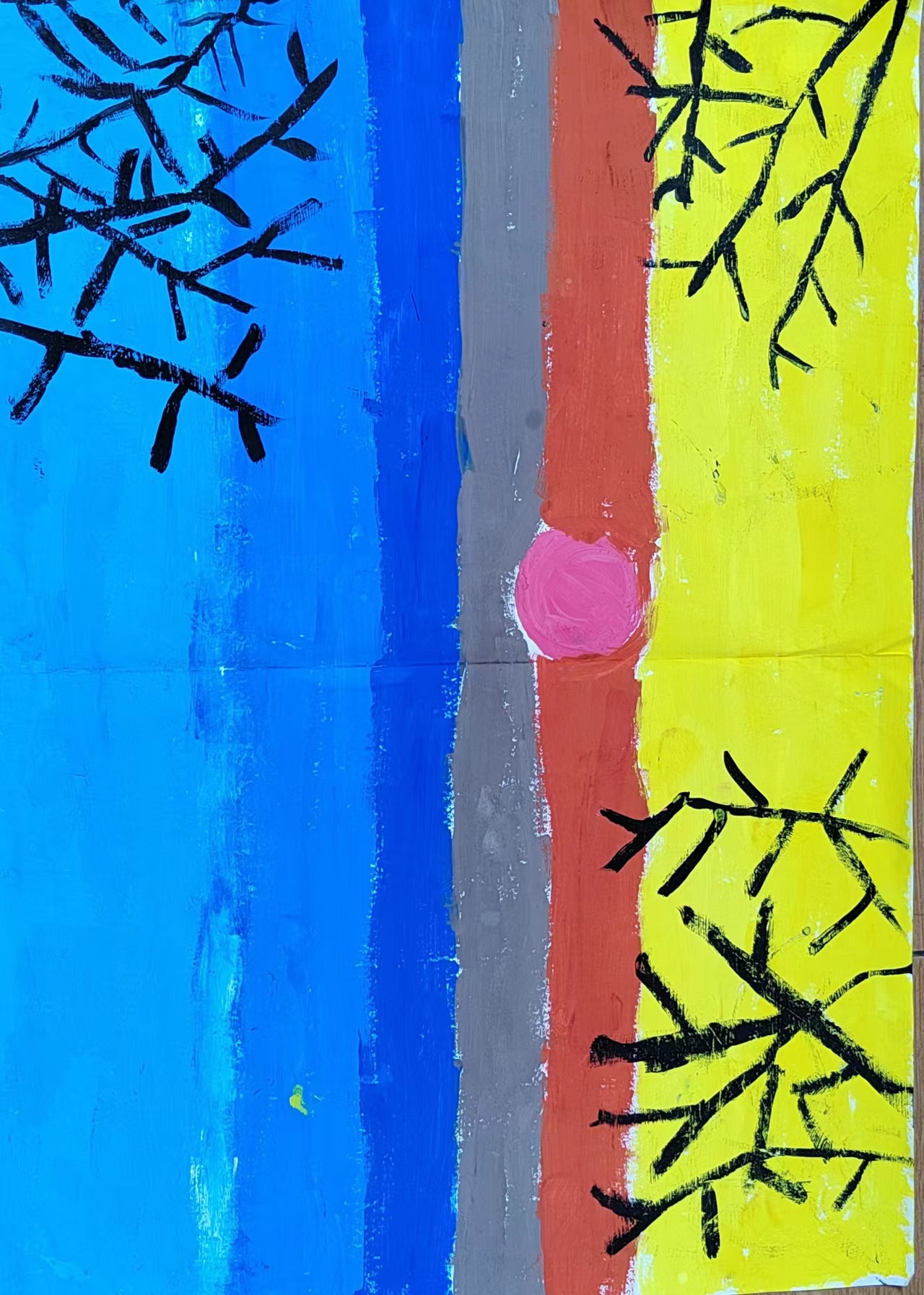 “海上日出”出自于舟山,在那山顶你可以在哪里看见宽阔的海和小岛,在海上你会看见有深浅的蓝色,在阳光下像三色蓝,在夕阳下,像一幅画挂在那里。“海上日出”呈现的是一股转瞬即逝的美,它似乎在告诉我们,要要珍惜当前的美好时光。