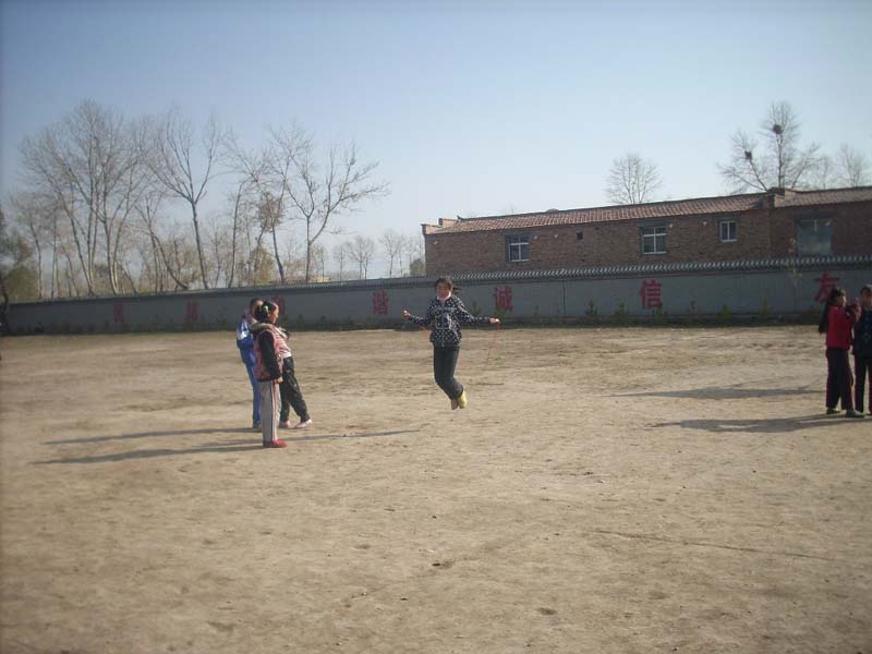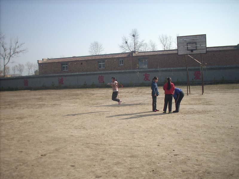 你看这几位同学,一人跳的时候另几位在数,等她跳不动的时候又交给其她女同学去跳,这样一个一个循环去玩。一轮下来之后评比谁跳的多,真是有意思!
