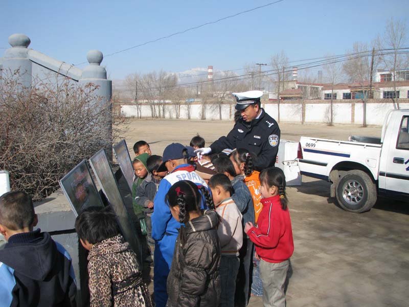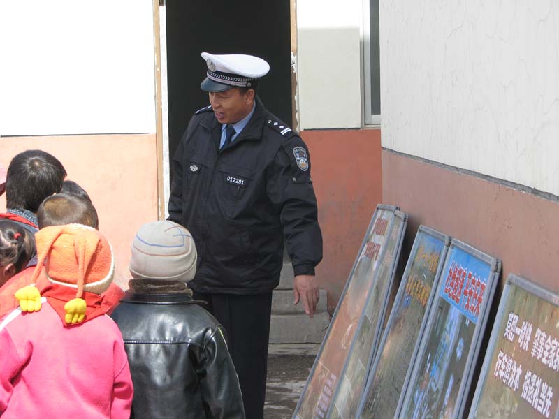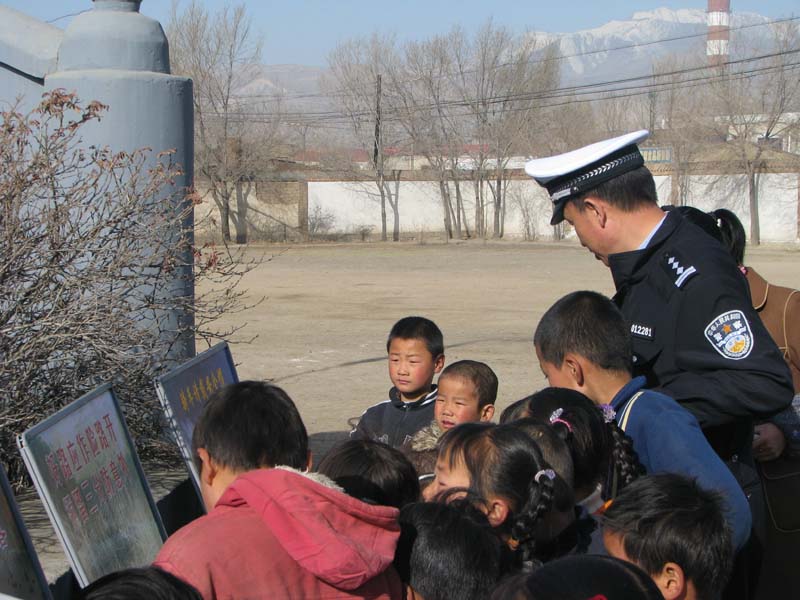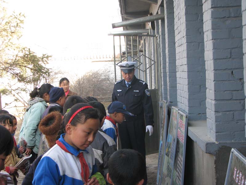 今天,交警叔叔到了我们学校。他们是来宣传道路安全以及交通安全教育的。由于我们初中部的同学还要上课,所以只有给小学部的小朋友们来进行教育。