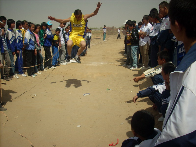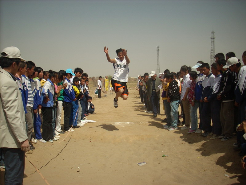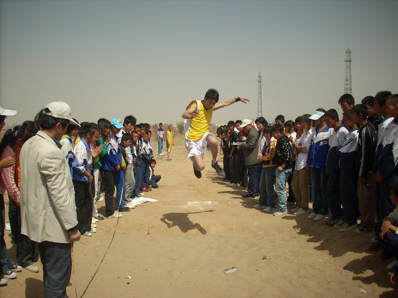 “你雄健的身影,在赛场上出现。你箭般的助跑,飞豹似的一跳,在空中留下优美的瞬间,你立刻成为注目的焦点。跳吧,那是你青春的激情!跳吧,那是你成功的展示”。这是我们班同学为跳远运动写的致我们班跳远运动员的表扬搞,就用这些美丽的语言,结束我的第一篇西部故事作品吧!
