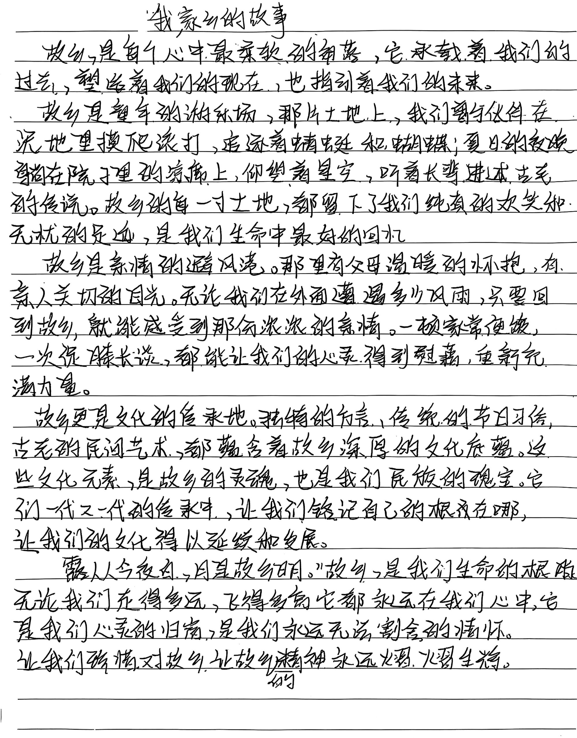 从“生命根基”的维度构建创作逻辑,分三层挖掘家乡的价值: 童年乐园层:以泥地嬉戏、夏夜星空等具象场景,展现家乡作为童年记忆载体的纯真属性,让土地成为“快乐与足迹的容器”。 亲情港湾层:通过家常便饭、促膝长谈等细节,诠释家乡是心灵慰藉的场域,强调其在人生风雨中的“疗愈与赋能”功能。 文化传承层:聚焦方言、民俗、民间艺术等元素,定位家乡为文化基因的“传承地”,点明其在民族文化延续中的根源意义。 最终以“露从今夜白,月是故乡明”的诗意升华,将家乡塑造为“心灵归宿与精神图腾”,呼吁人们珍视并传承这份跨越时空的家乡情怀。