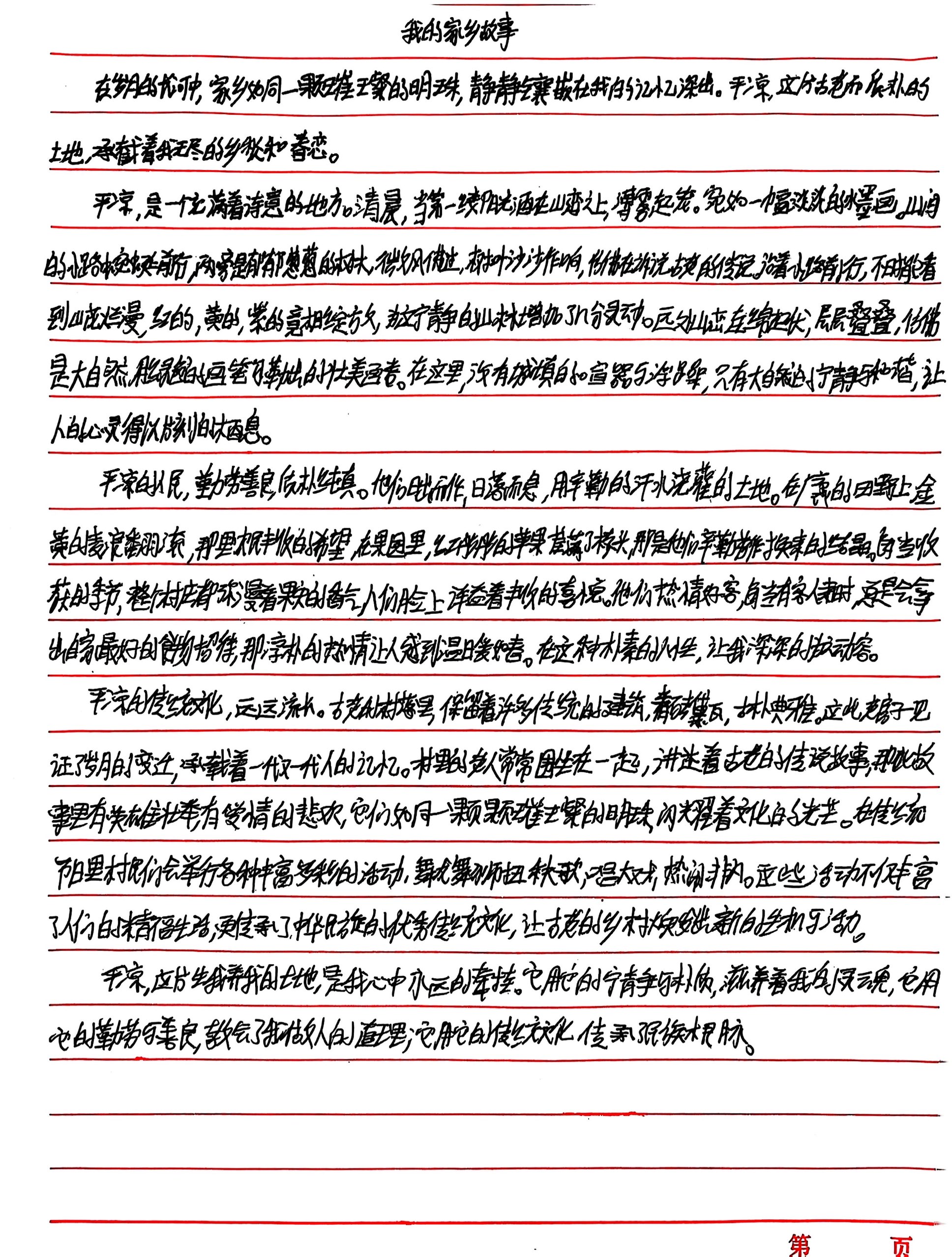 以平凉为叙事核心,从三个维度诠释家乡的精神内涵: 自然诗意维度:通过清晨山景、山间小路、烂漫山花等意象,描绘平凉如“淡淡水墨画”的宁静壮美,突出其作为心灵栖息之所的特质,展现黄土高原上自然景观的独特韵味。 人文精神维度:刻画平凉人民勤劳质朴、热情好客的群像,以田野麦浪、果园苹果等丰收场景与待客细节,传递土地滋养下的人性光辉,体现家乡人在劳作与生活中展现的淳朴品质。 文化传承维度:聚焦传统建筑、民间故事、节庆活动,挖掘平凉深厚的文化底蕴,展现其在时代变迁中对传统文化的传承与发展,最终落脚于平凉对个人灵魂、做人道理、民族根脉的三重滋养,让乡愁成为连接过去与未来的精神纽带。