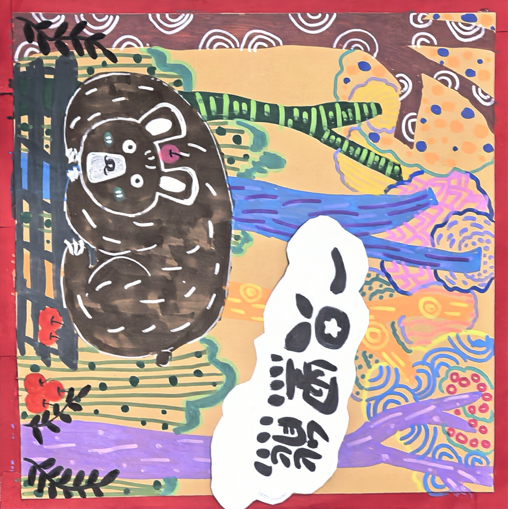 大家好!我画的是《山林里的黑熊乐园》。我们这儿的山林里住着可爱的黑熊,它们在彩色的树林里玩耍,周围还有红红的野果。来我们这儿旅游,能在山林里看到黑熊的身影,就像走进了动物的快乐家园。这里的黑熊特别有趣,希望大家来我们的黑熊乐园,和黑熊来一场奇妙的邂逅!
