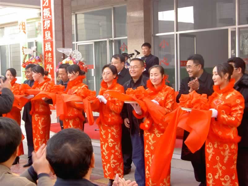 我校音体美组的老师身着红妆担当起了礼仪小姐的重任。随着喜庆的鞭炮声响起,张先生和学校领导以及家长代表为这次庆典剪了彩。
