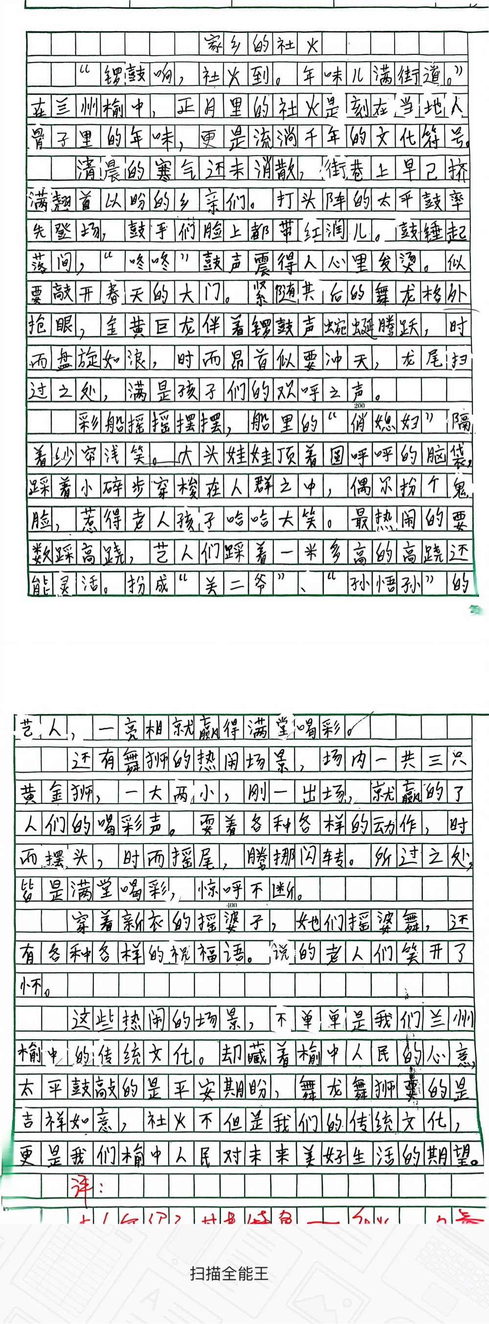 创作《家乡的社火》时,旨在以细腻笔触展现兰州榆中社火的独特魅力。从太平鼓、舞龙舞狮到踩高跷、摇婆子等多样表演,通过对场景、动作、神态的生动刻画,还原社火的热闹氛围。同时,深入挖掘社火背后的文化内涵,将其作为当地年味符号与文化传承载体,传达榆中人民对平安吉祥的期盼、对美好生活的向往,让读者在文字中感受传统文化的温度与力量。