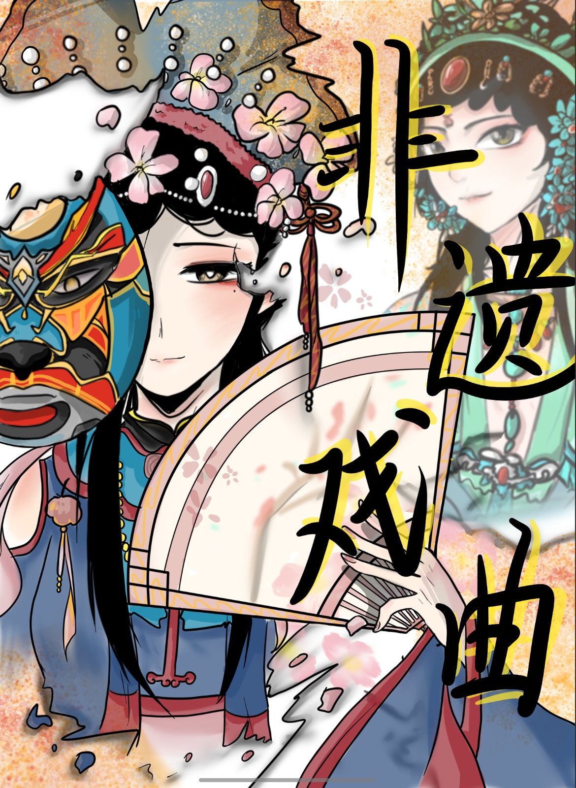 我是一个非遗戏曲爱好者,几年来我所听的戏曲让我受益匪浅,沉迷于其中无法自拔,这些流淌在岁月里的艺术瑰宝,不仅是视听的盛宴,更承载着民族的记忆与情怀,我痴迷于它的雄浑大气。于是,当我得知这次活动主题包括非遗文化后,心血来潮画了一位我颇为喜欢的角色,呈现在本次作品的画面上。