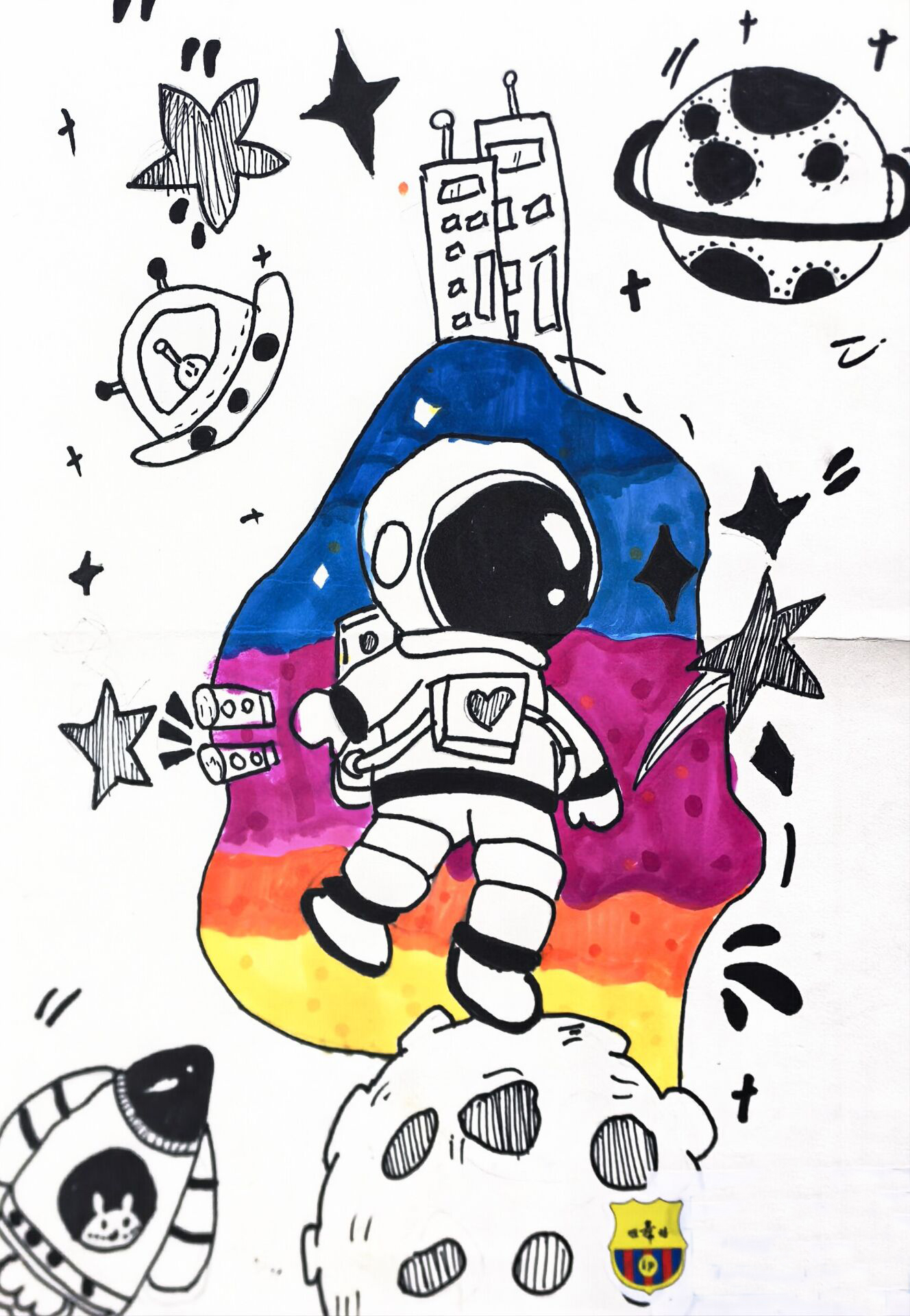 大家好!我画的是《地球家园温柔开发记》。你看,蓝蓝的地球旁有风力发电机,草地上有小工厂,周围还有好多绿树和小花。老师说开发不能伤害地球,要像这样慢慢弄。我们既要建好用的设施,也要保护小草大树和小动物。欢迎来看看这个温柔开发的地球家园,保证你们会爱上这个既先进又美丽的家哦!