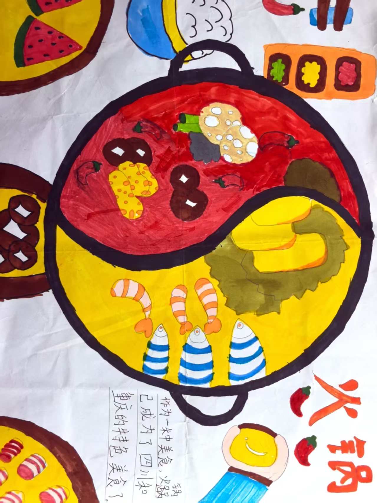 作为一种美食,火锅已经成为了四川和重庆的特色美食了。我们家在冬天最爱做火锅,所以我非常喜欢吃火锅。为了满足全家人的不同喜好,我们常常吃鸳鸯锅。鸳鸯锅就是把火锅盆用一个不锈钢铁片呈"S"形分隔开来,两边可以分开做红汤和清汤,满足吃辣的和吃清淡的不同口味。食材也有区分,吃的时候,自主选择。也可以两种汤锅都吃,比如我,吃牛肉、排骨我就喜欢麻辣的红汤,吃小酥肉、虾,我就喜欢吃清汤,非常自由、快乐。