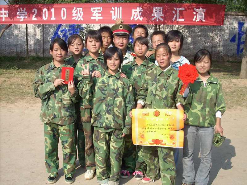 演练结束后,学校领导、各班主任以及六名教官合影留念。这次军训,整个过程纪律严明,秩序良好,达到了预期的效果,对学生思想产生很大的影响,增强了我们的纪律观念,对今后我们在校学习有积极的促进作用。