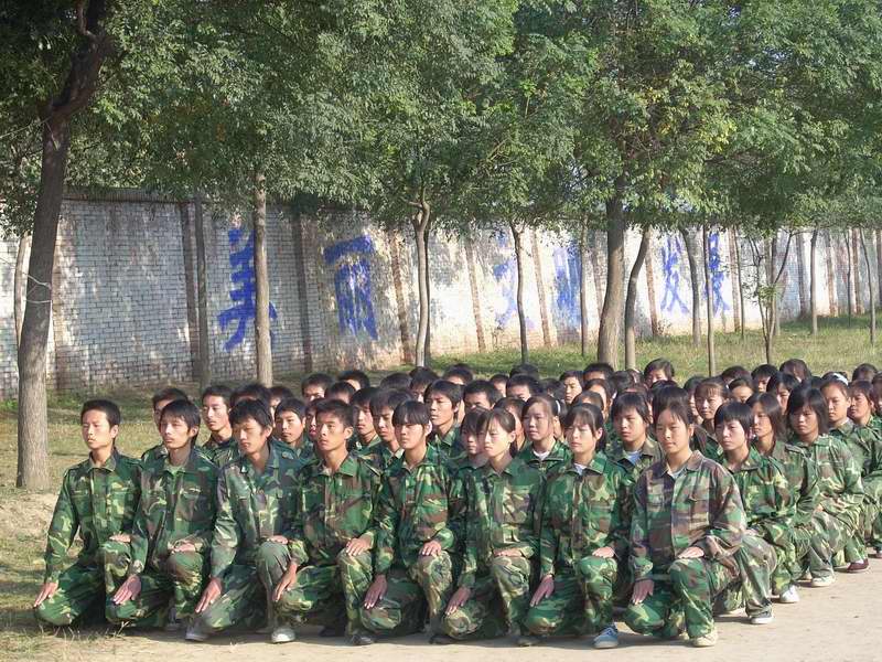 高一共有六个班,每班都有一个教官,经过一周的艰苦训练,学生们一个个都成了训练有素,功夫过硬的战士,六个班逐个演练,他们整体的步伐,嘹亮的口号不时赢得观众的热烈掌声。同学们各个精神抖擞,神情严肃,俨然是一支威武的人民之师。