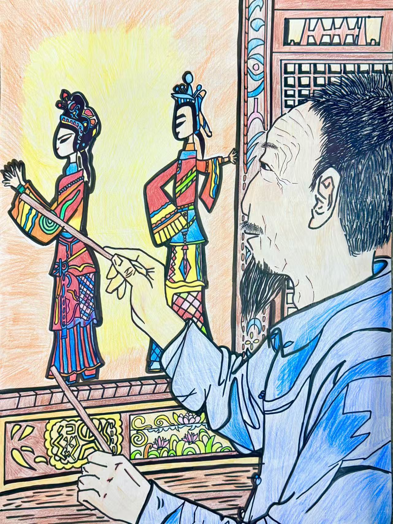 这幅画里的皮影戏,是恩阳古镇里的"活年味"——老艺人的指尖牵着川北皮影的彩衣,唱腔混着老街的腊味,把《白蛇传》《柳荫记》里的川味故事,透过亮布递给围在台下的观众。 四川皮影的"灯影戏"本就带着巴山蜀水的泼辣与温软,老艺人的胡须里缠着锣鼓的余韵,皮影上的彩线织着川人的热闹与执着:年关一到,亮布一拉,灯影里的才子佳人就成了古镇人心里最暖的年俗,把川北的烟火气,都揉进这方寸的光影里。