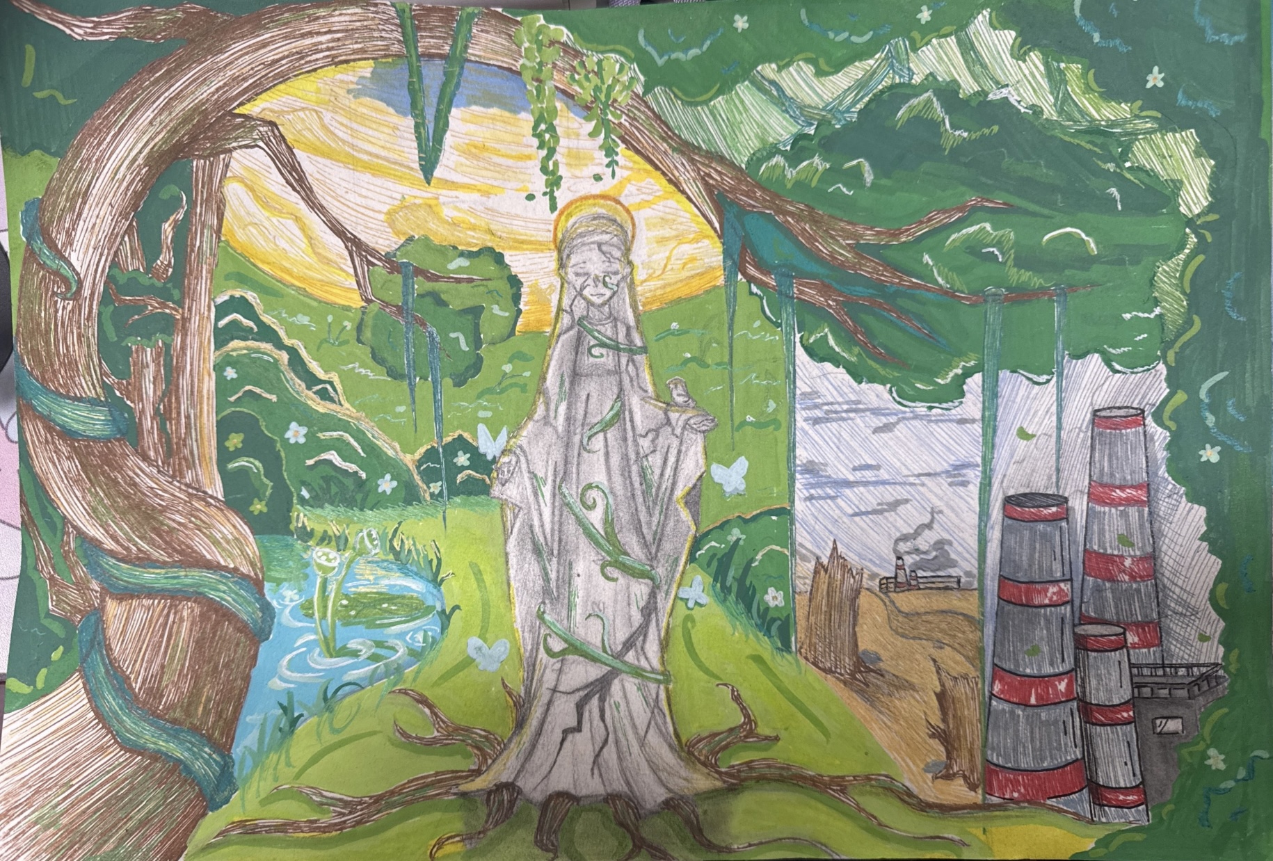 当敦煌壁画的飞天与风蚀岩石的对视,当故宫脊兽的剪影撞见冰川消融的泪痕,人类文明史册的每一次书写,都是向自然索要的墨汁。 人类科技的发展速度远远高于大自然的修复速度,虽然人类每一刻都在宣读保护自然的口号,可真正行动却微乎其微。 我们并不是地球真正的主人,每一滴归还自然的清源方能汇成人类救赎的湖泊。所以为了子孙千秋万代,让我们行动起来,成为大自然的保护者!