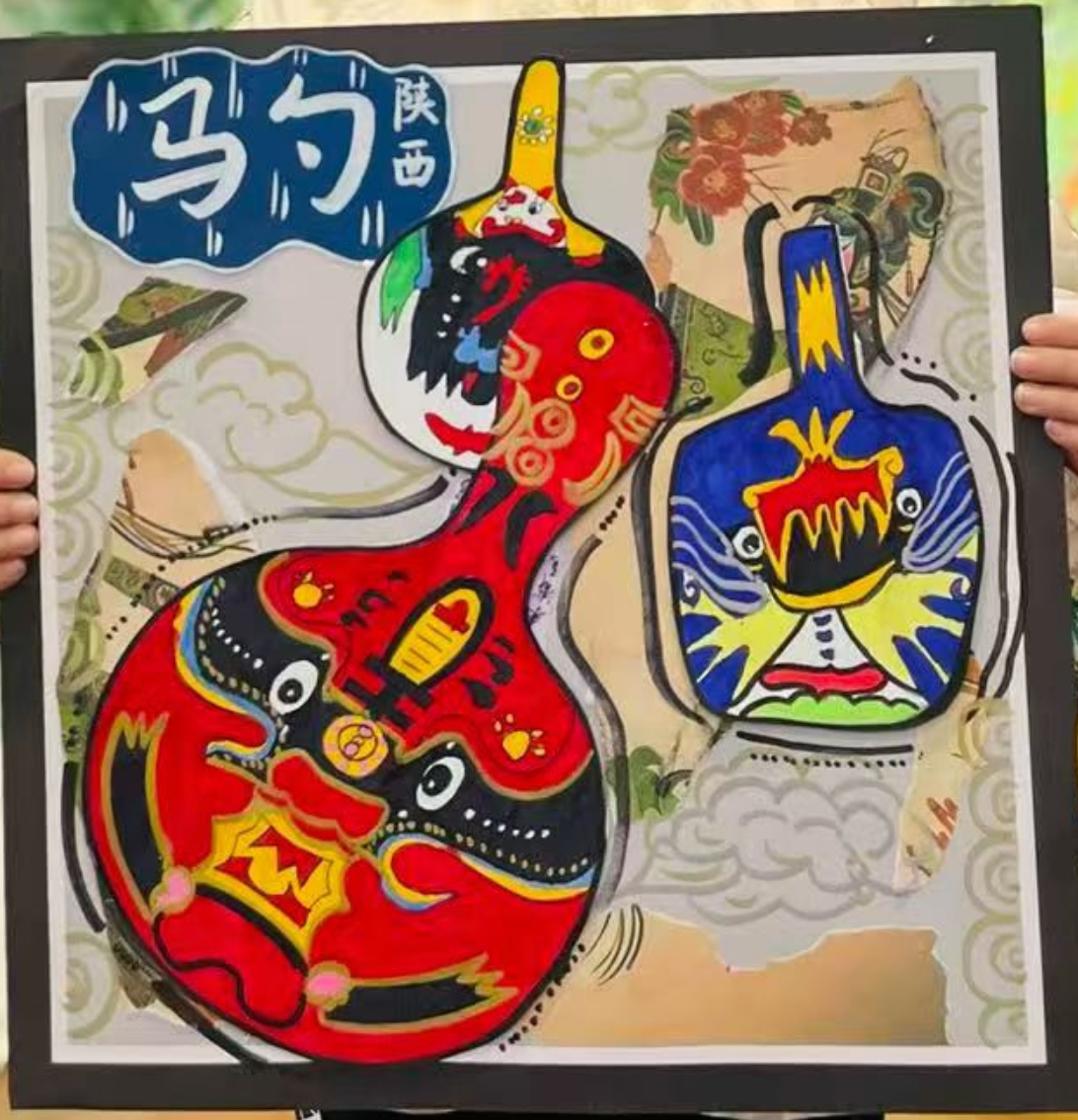 以陕西非遗"马勺脸谱"为基底,用葫芦形马勺作载体——红黑主色承秦腔花脸的浓烈,纹样裹着凤翔泥塑的民间意趣,配色里藏着陕北剪纸的鲜亮。把老陕人刻在骨子里的秦地烟火、戏曲魂灵,揉进这一方马勺:既是非遗技艺的新画语,也是三秦文化从老物件里长出的新模样。