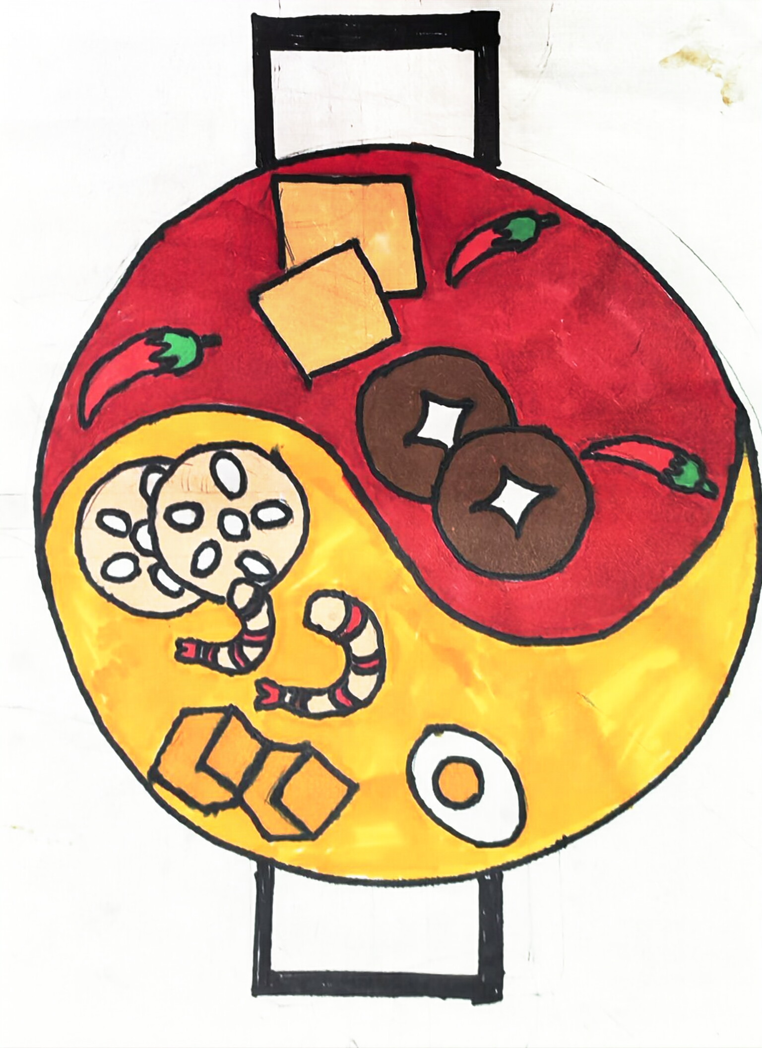 大家好!我画的是《生态鸳鸯锅・乡味小聚》哦!这是我家乡的特色火锅,里面的菜都是本地种的生态菜、养的新鲜虾!来我家乡旅游,除了看漂亮的山水,一定要尝尝这热乎乎的鸳鸯锅~咱们吃的时候要按需夹菜,不浪费食物,这也是爱护家乡生态的小办法哦!快来我家乡玩,吃香香的生态火锅,逛好看的风景,一起当快乐又环保的小游客吧!