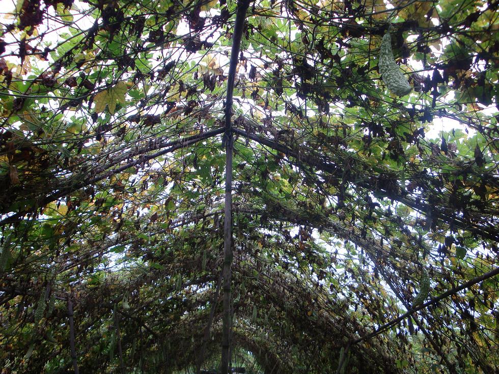 我家在农村,为了发展经济,和许多人家一样,爸爸妈妈将水稻收割后,在田里搞起了大棚种植,种苦瓜。