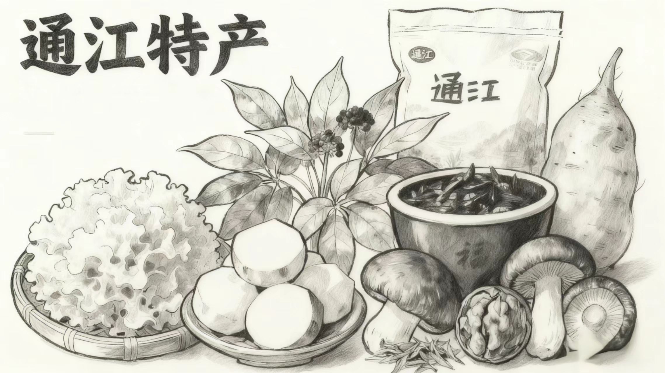 一张能够代表通江的、独特的“视觉文化名片”。它不仅是物质的展示,更是地方文化的浓缩。通过展现这些最具代表性的物产,我们希望唤起观者对通江这片土地的好奇与向往,传递其“物华天宝,人杰地灵”的内在气质,也是一次对地方特色物产与农耕文化的记录与致敬。在快速变化的时代,它以艺术的形式,守护和传播着这份独特的地域记忆,具有文化存档的意义。