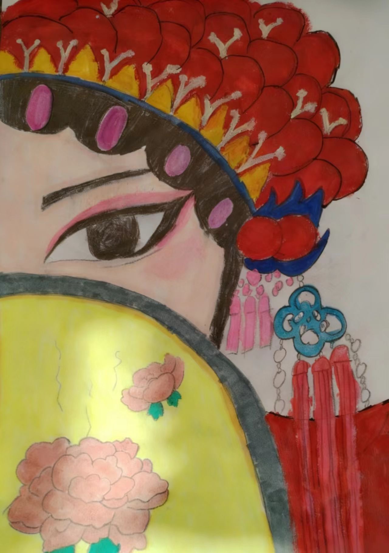 "半"的哲学:"不全"的呈现,打破了传统的完整叙事,邀请观者主动填补画面之外的想象空间。它象征着非遗在历史长河中的流传,虽历经岁月侵蚀,其核心精神依然璀璨。 凝视之"眼":画面中心那只唯一的、清晰的眼睛,是全作的灵魂。它既是角色在"凝视"观者,发出穿越时空的对话;也是非遗文化本身在"回望"当代,充满了生命力的叩问。它迫使我们去思考:在今天,我们应如何与这些古老的符号对视?